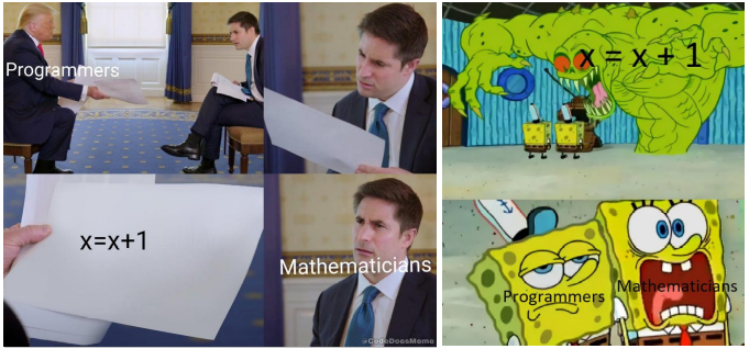 Le sens du signe = n'est donc pas du tout le même qu'en mathématiques. On dit que c'est un signe d'affectation.