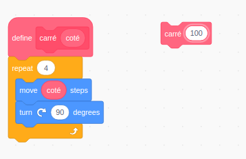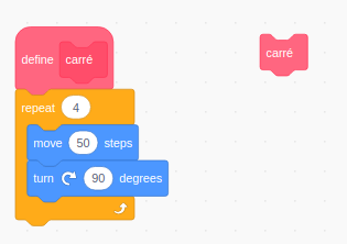 Par exemple, en Scratch, si on sait que l'on va avoir à tracer beaucoup de carrés, on crée un bloc carre :
