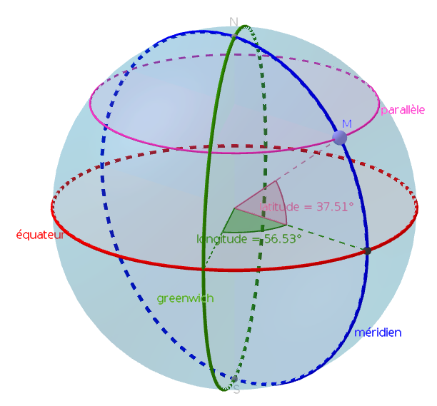 Ces cercles forment des angles par rapport au centre de la Terre : la latitude et la longitude. Ces angles sont les coordonnées géographiques (ou GPS par abus de langage) de ce point.