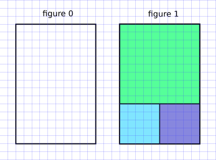 On considère un rectangle de dimension 11 sur 13 (figure 0). On veut remplir ce rectangle avec le minimum de carrés.